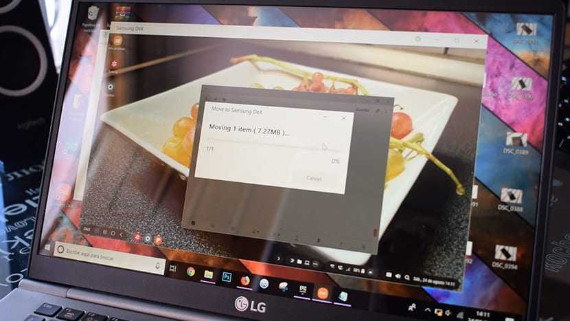 Копировать файлы с компьютера на телефон можно простым переносом на рабочий стол окна Samsung Dex, они сохраняются в папку «Загрузки» (Downloads)