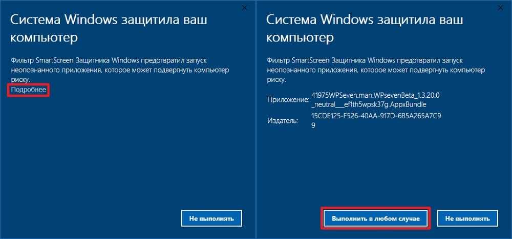 Но, если вы полностью уверены, что приложение, которое вы пытаетесь запустить, безопасно и было получено из надёжного источника, есть простое решение, хотя и не очевидное. Под текстом сообщения расположена кнопка «Подробнее», при нажатии на которую появляется дополнительная информация и возможность запустить приложение принудительно.