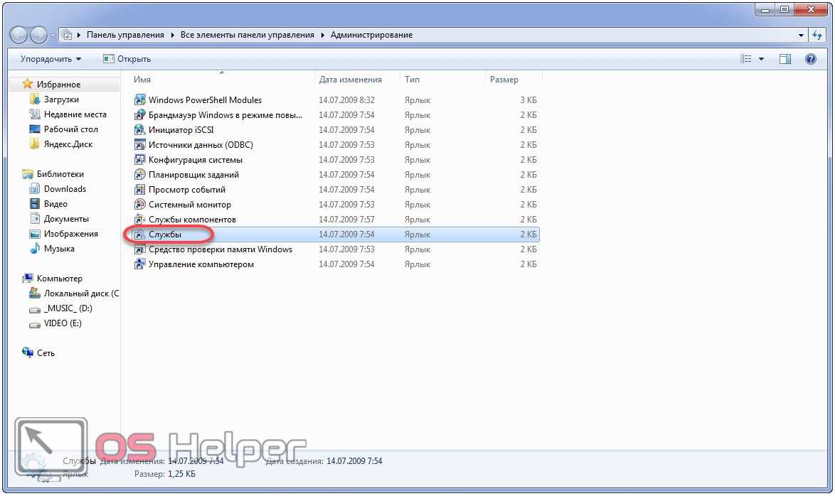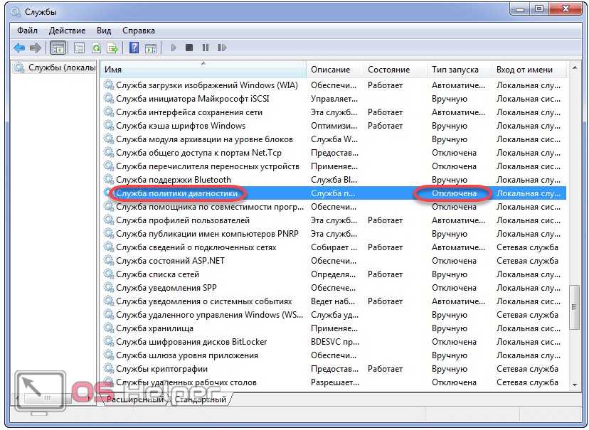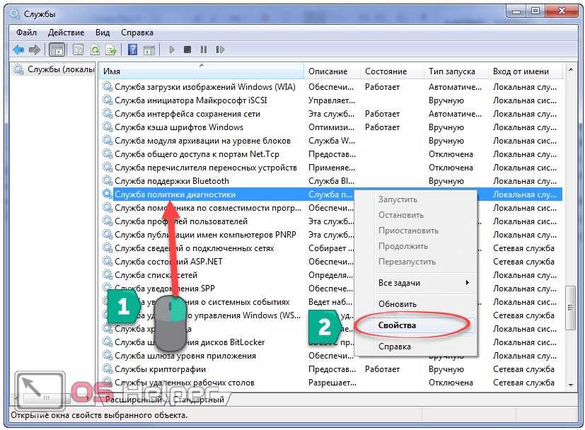 Дальше рассмотрим, как запустить службу политики диагностики в Windows 7 классическим способом.