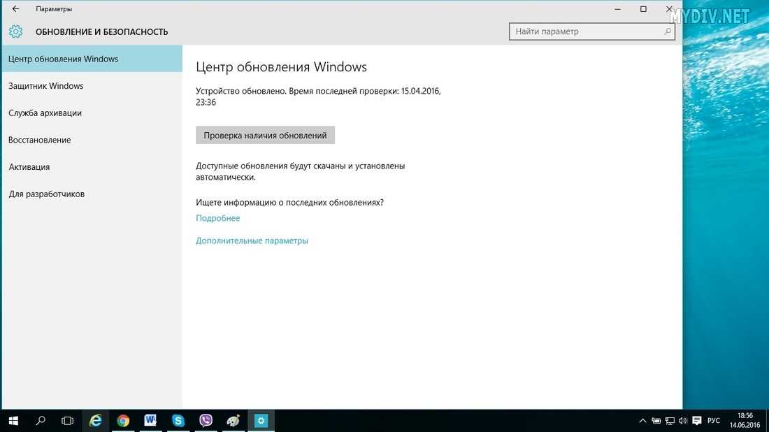 последовательно переходим: «Параметры» – «Обновления и безопасность» – «Центр обновления Win»;