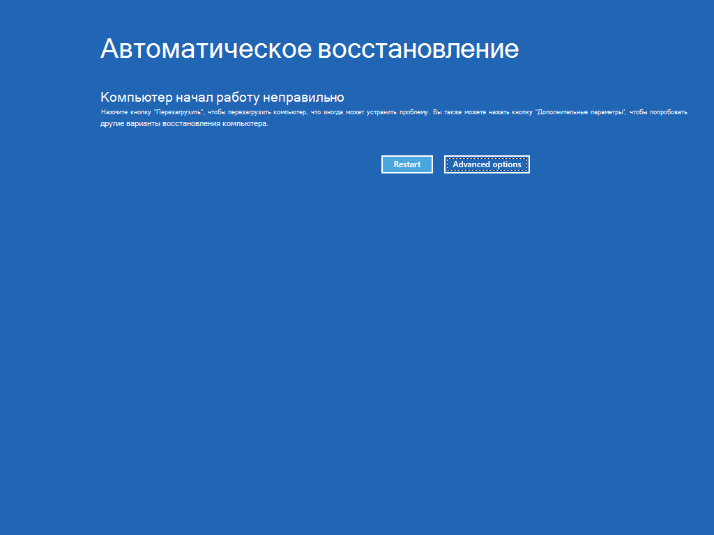 При загрузке Windows 10 должно запустится автоматическое восстановление. Откройте дополнительные параметры, как показано на фото ниже.