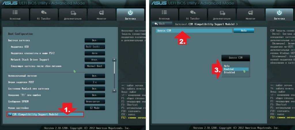 Следующий шаг – в этом же разделе выбираем пункт CSM и выставляем для него в качестве параметра запуска вариант Enabled: