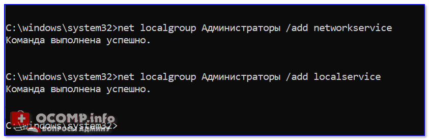 И так, первое, с чего следует начать — это с запуска командной строки от имени администратора, и расширения прав для группы «NETWORK SERVICE».