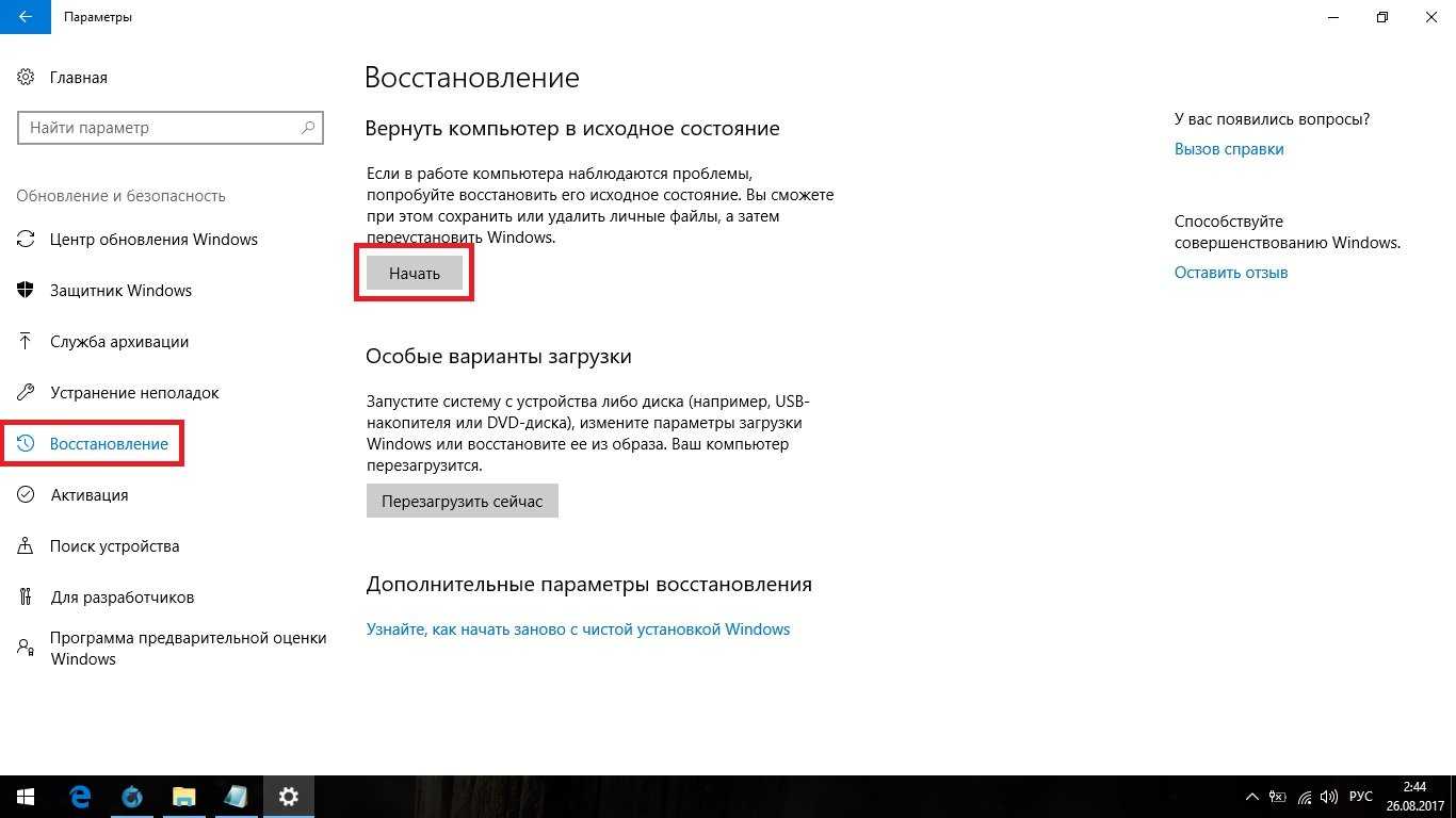 6. Нажимаем «Вернуть ПК в исходное состояние», дабы сбросить Windows 10.