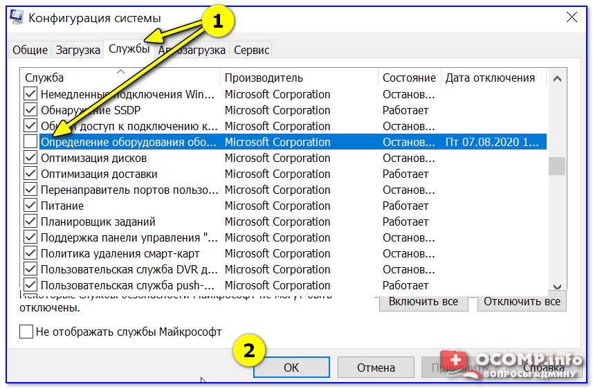Кстати, аналогично проверить работу этой службы можно через ‘Конфигурацию системы’. Для этого нажмите сочетание Win+R, и в окне ‘Выполнить’ используйте команду msconfig.