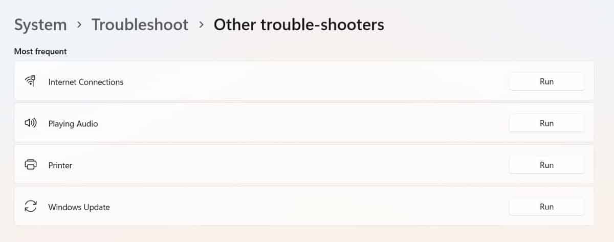 - Перейдите в «Система» > «Устранение неполадок» > «Другие средства устранения неполадок».