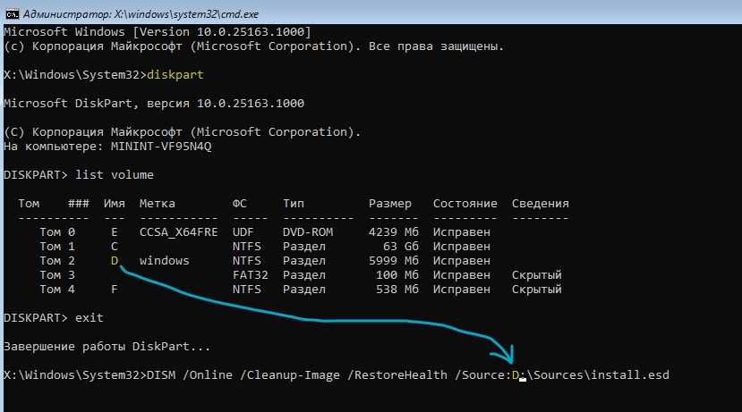 - Выберите в меню «Командная строка» и используйте командные строки diskpart. Введите и выполните команду: sel disk 0. Введите и выполните команду: list vol