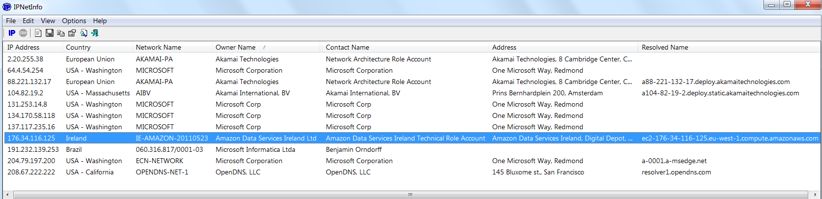 По сравнению с первым логом этот выглядит скучно. На экране не уместился только один айпишник, а их общий список состоит всего из четырех. Два из них относятся к сети доставки контента и не могут эффективно блокироваться в hosts – слишком много подсетей принадлежит Akamai. Третий IP-адрес принадлежит службе Windows Update, которую не блокировали. Самым стойким шпионом оказался BingBot. Его связь с бразильской Microsoft Informatica не знает преград. Видимо, процесс содержит встроенные средства обхода ограничений.