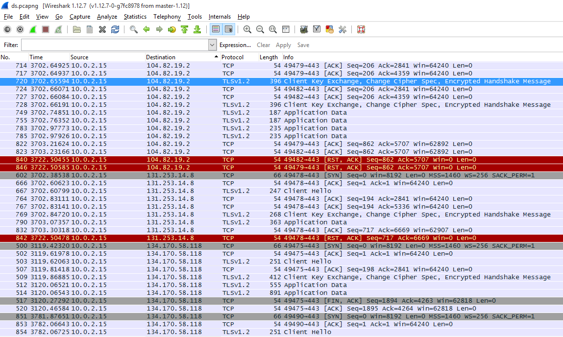 Мы отключили всё, что только можно и запустили Wireshark снова. На этот раз не пользовались никакими встроенными приложениями и даже не трогали мышку. Вернувшись через час, видим в логах сниффера до боли знакомые IP.