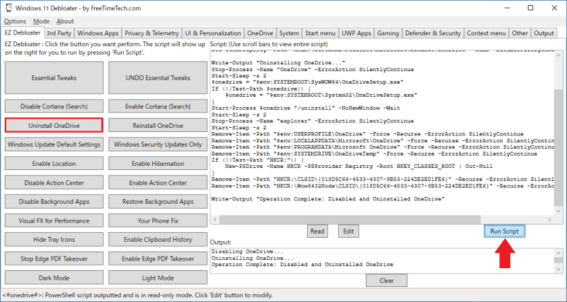 - Click on Run Script, under the script’s preview, and on the right of the window, to do as it states: run the script and apply the changes. You might have to restart your PC afterward.