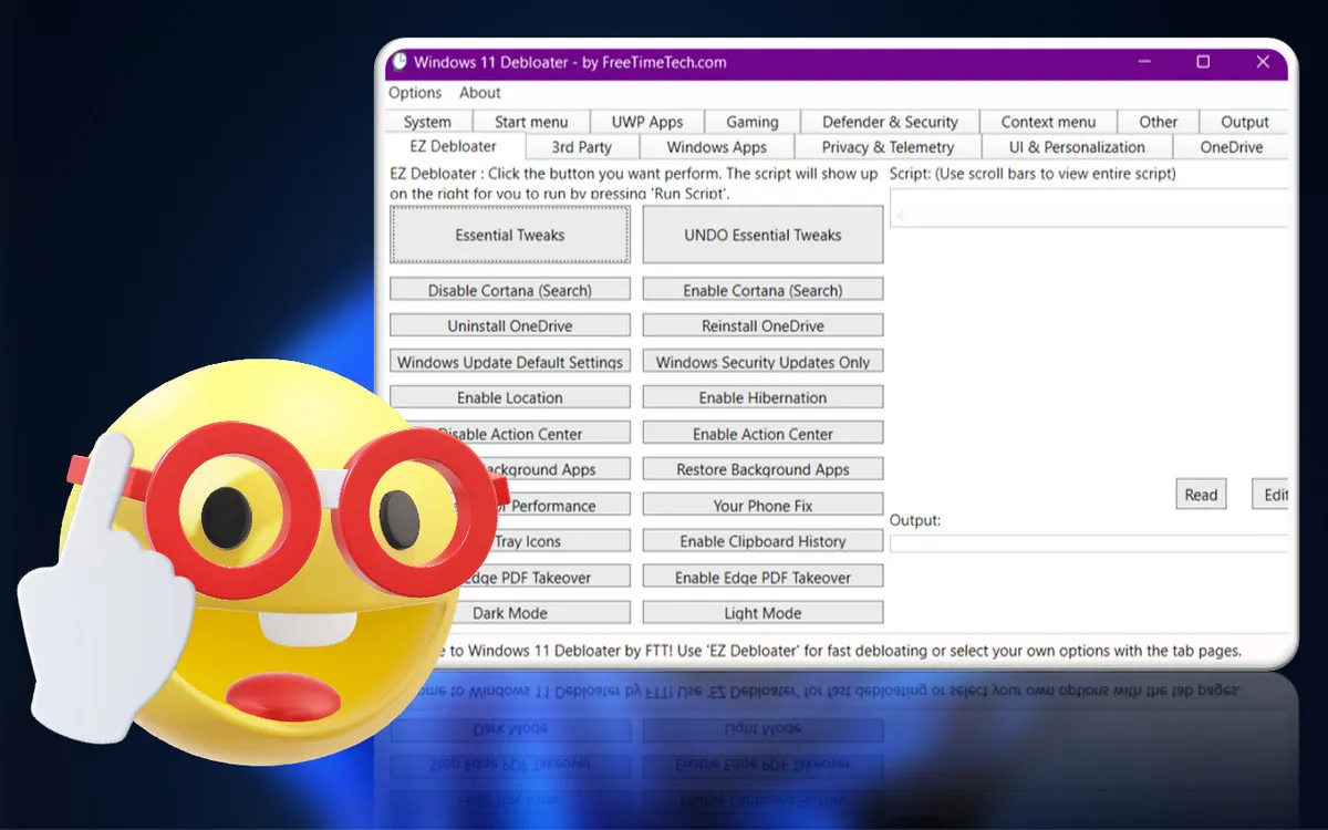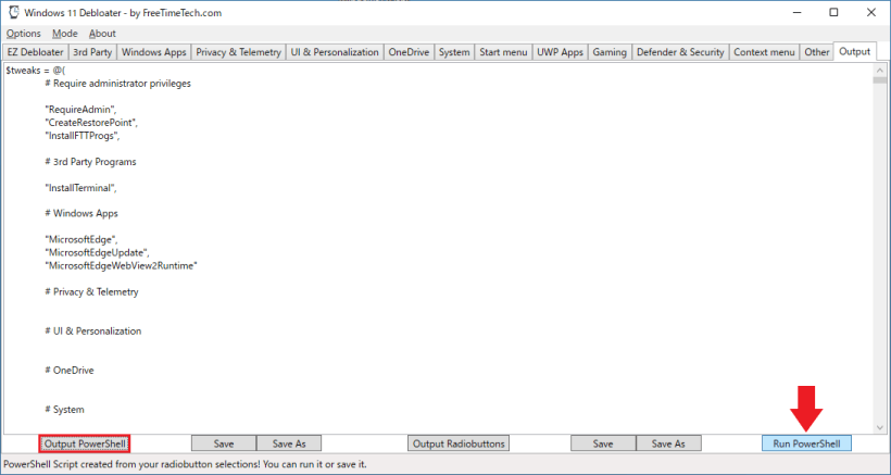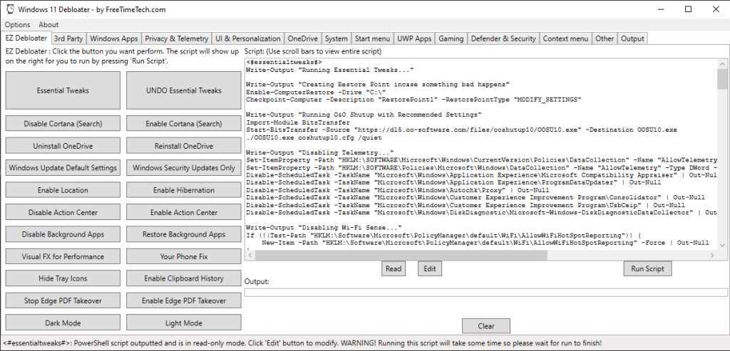 Если вы хотите больше контролировать эти настройки, вы можете отредактировать сценарий самостоятельно. Однако в этом случае, вероятно, было бы проще использовать Windows Debloater.