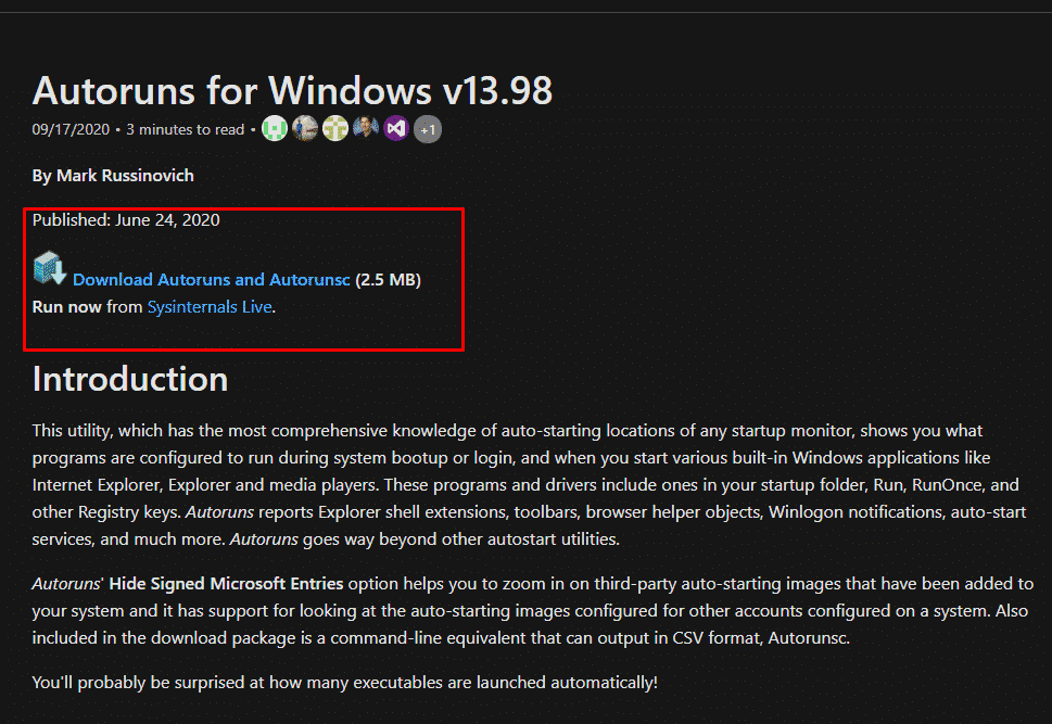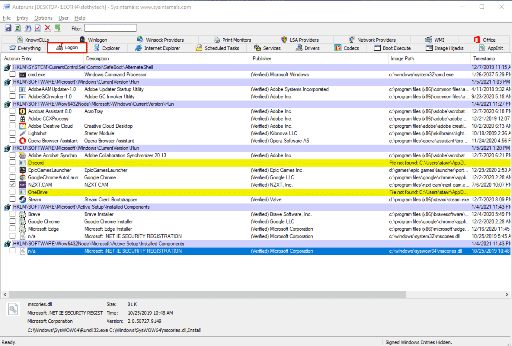 We will now disable some startup apps and processes that we don’t need and are bloating our system. We won’t go with the traditional way from the task manager, but instead, we will go more in-depth in the processes with the help of Autoruns by Microsoft. Autoruns will allow us to see every single app and process running and automatically start when our computer turns on.