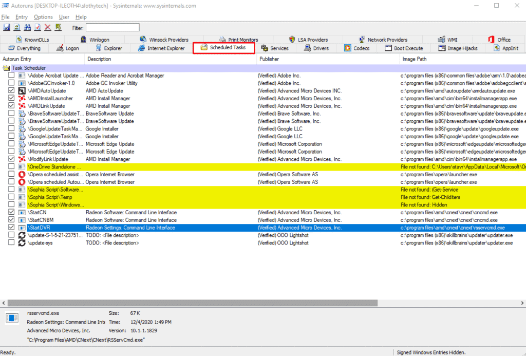 I prefer to keep only what’s related to my GPU/CPU software updates on the Scheduled Tasks tab. I disable everything related to browsers and other software that I barely use since if there is any update, you will probably get a notification from the program itself.