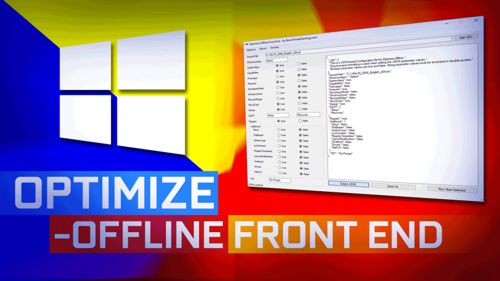 We also have Optimize-Offline Front End. Optimize-Offline is a Windows Image optimization module for Windows 10. Our tool allows to easily change Optimize-Offline JSON configuration setting file using a GUI and Run O-O. Link: https://benchtweakgaming.com/2020/11/01/optimize-offline-gui-tool-front-end/