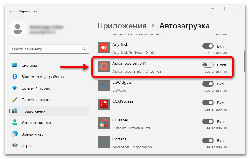 Подробнее:Отключение автозапуска программ в Windows 11Добавление приложений в автозагрузку в Windows 11