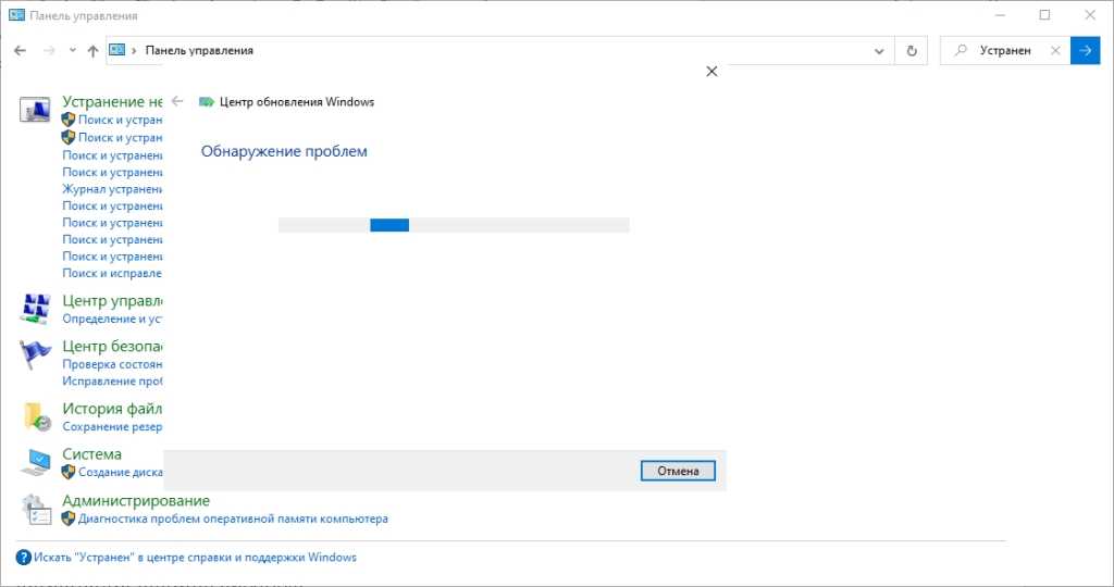 Мастер настройки выполняет обнаружение проблем работы Центра обновления