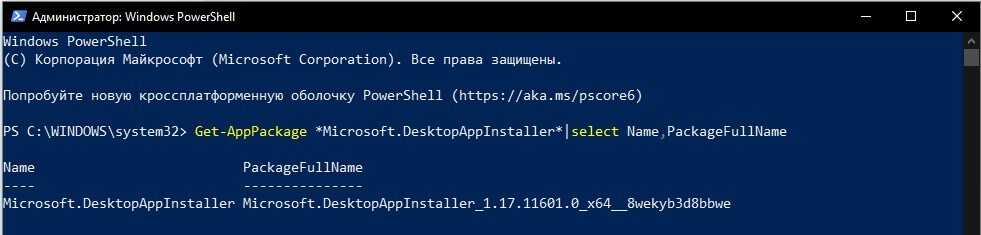Get-AppPackage *Microsoft.DesktopAppInstaller*|select Name,PackageFullName