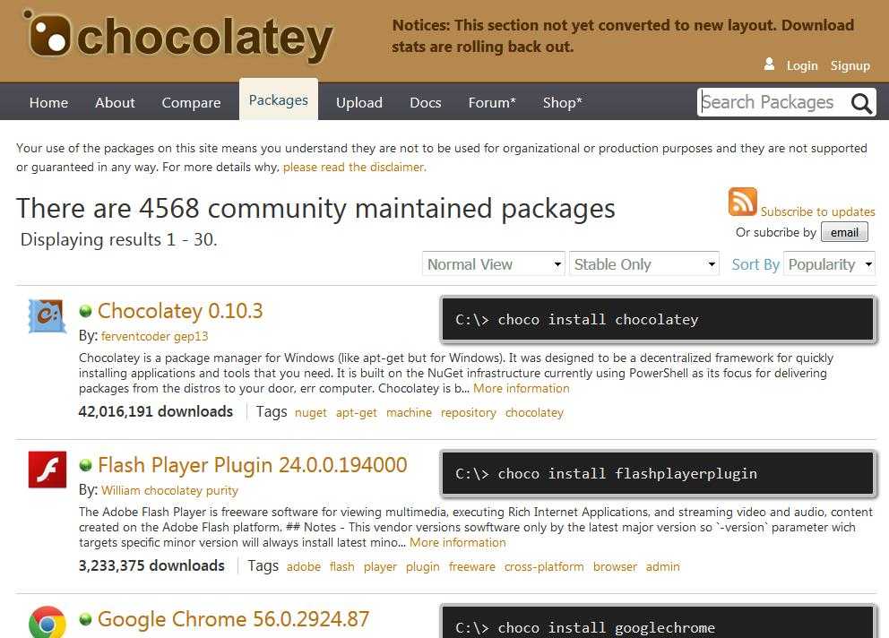 Список доступных для установки приложения можно получить непосредственно на официальном веб сайте Chocolatey (https://chocolatey.org/packages)