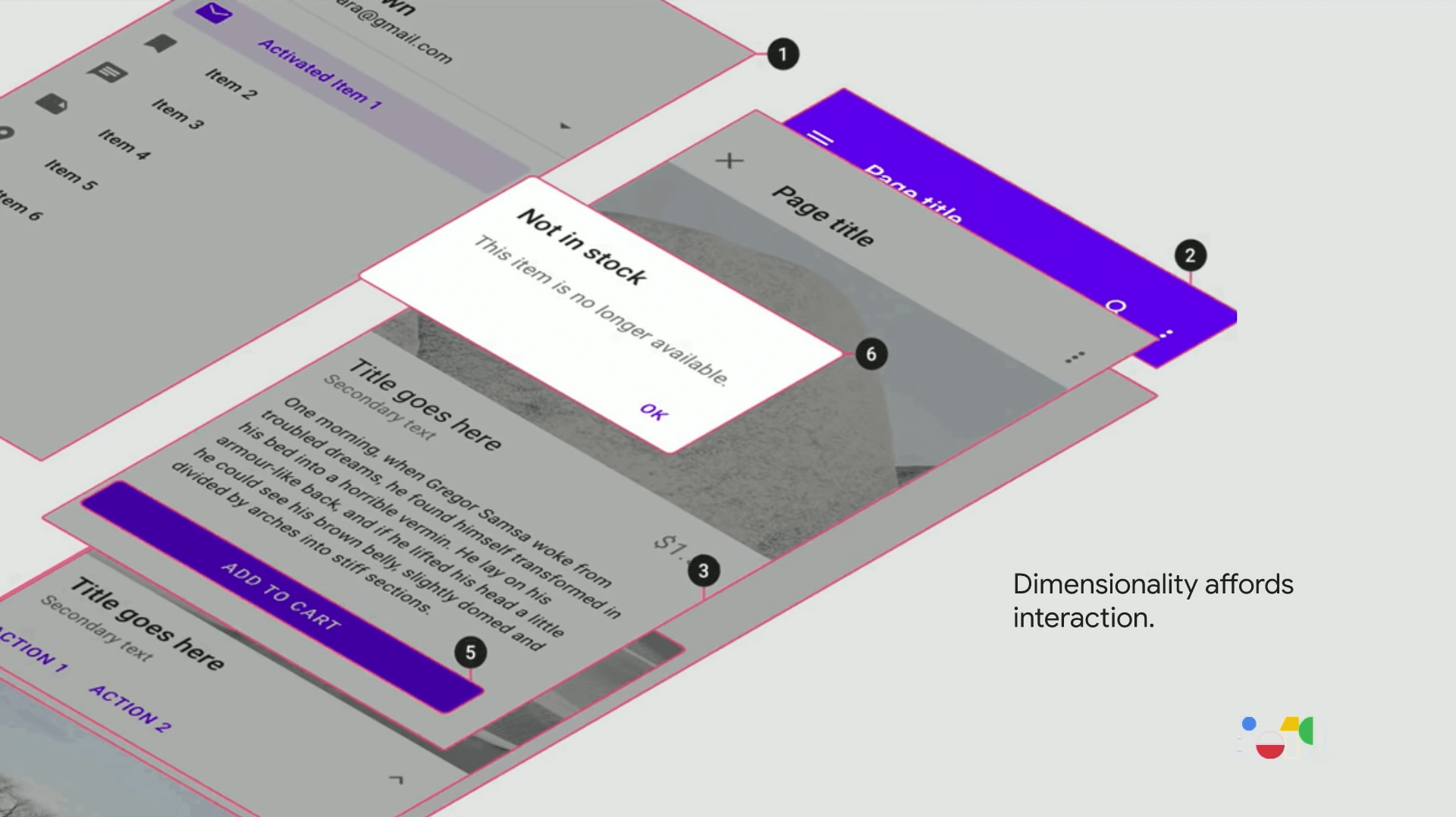 Google применяет систему Material Design. В светлой теме плашки отделяются друг от друга по принципу «наслаивания»: каждый элемент интерфейса — это отдельный слой, который отбрасывает тень на предыдущий:
