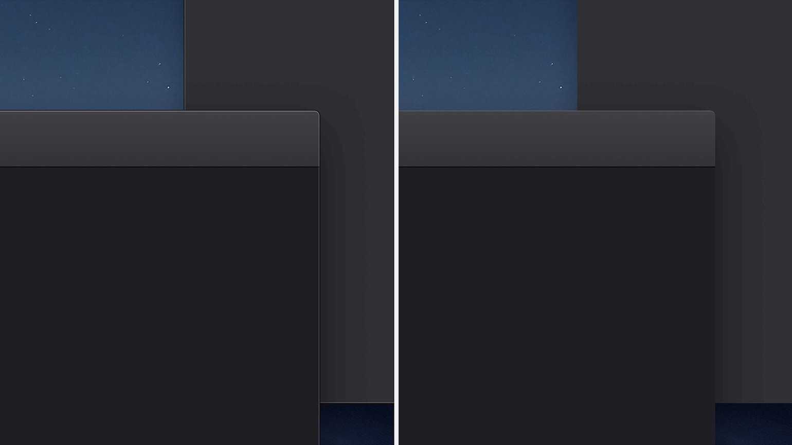 Тени в тёмной теме macOS с обводкой и внутренними бликами окна и без них. Изображение: Apple