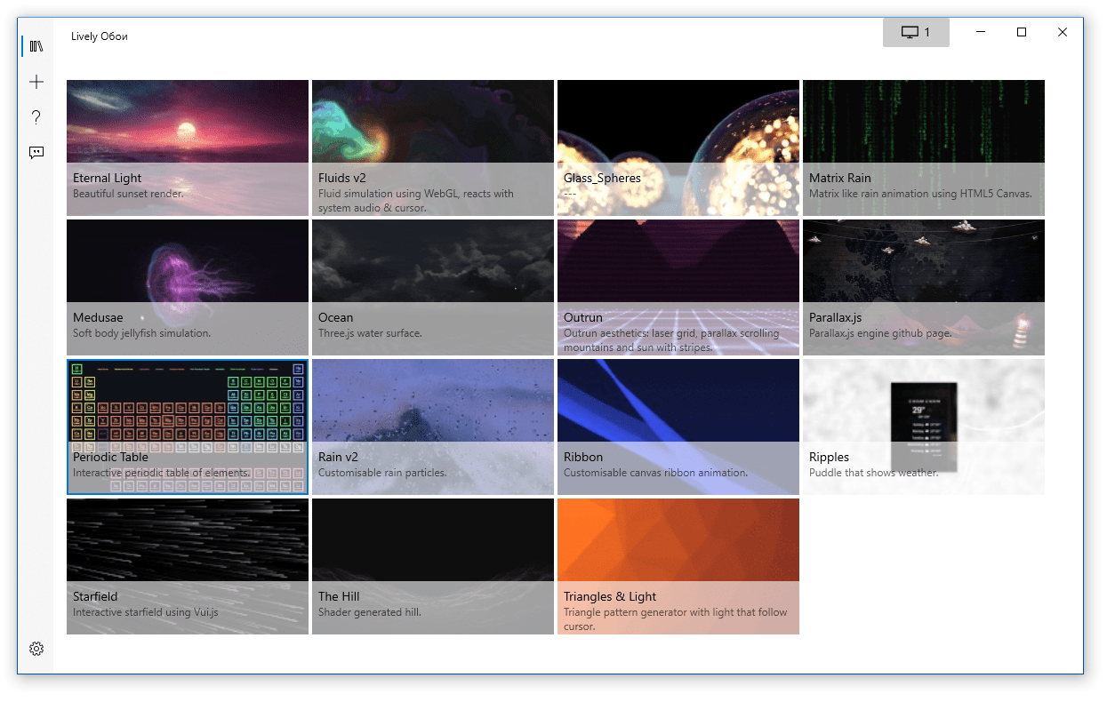 Есть одна программа, которая называется Lively Wallpaper — она абсолютно бесплатная и имеет ряд преимуществ в виде возможности создавать и добавлять свои собственные видео а затем установить их в качестве видео обоев на рабочий стол. Видео можно добавлять даже через youtube путем добавления ссылки, что очень круто. Более того, есть некоторые обои с которыми пользователь может взаимодействовать, например есть видео обои из списка химических элементов Менделеева, наводя и нажимая на каждый элемент из списка, она увеличивается, где можно посмотреть подробное описание данного элемента, это очень круто.