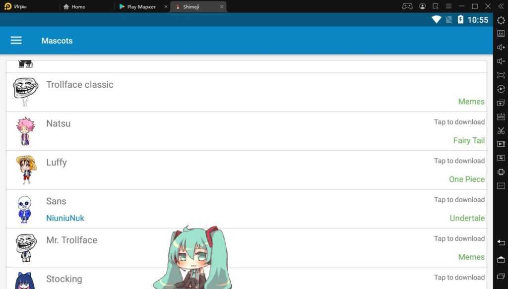 И многие хотели бы видеть подобное и на Windows. Но как быть, если это приложение рассчитано лишь на мобильные устройства? Ответ прост – использовать эмулятор! С его помощью вы легко сможете скачать Shimeji на ПК. Конечно, в этом случае также будет персонализирован лишь рабочий стол эмулятора, но это – уже что-то.