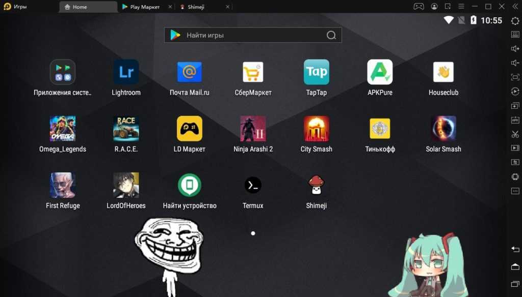 Сейчас существует сразу несколько простых, удобных и бесплатных эмуляторов, в которых может быть запущено приложение Shimeji на компьютере или ноутбуке. Безусловно, одним из популярнейших является Bluestacks. Но и помимо него есть хорошие варианты. Многим нравится Nox, другие же используют LDPlayer. Именно на последнем мы и остановимся – в нем данное приложение уже было нами протестировано.