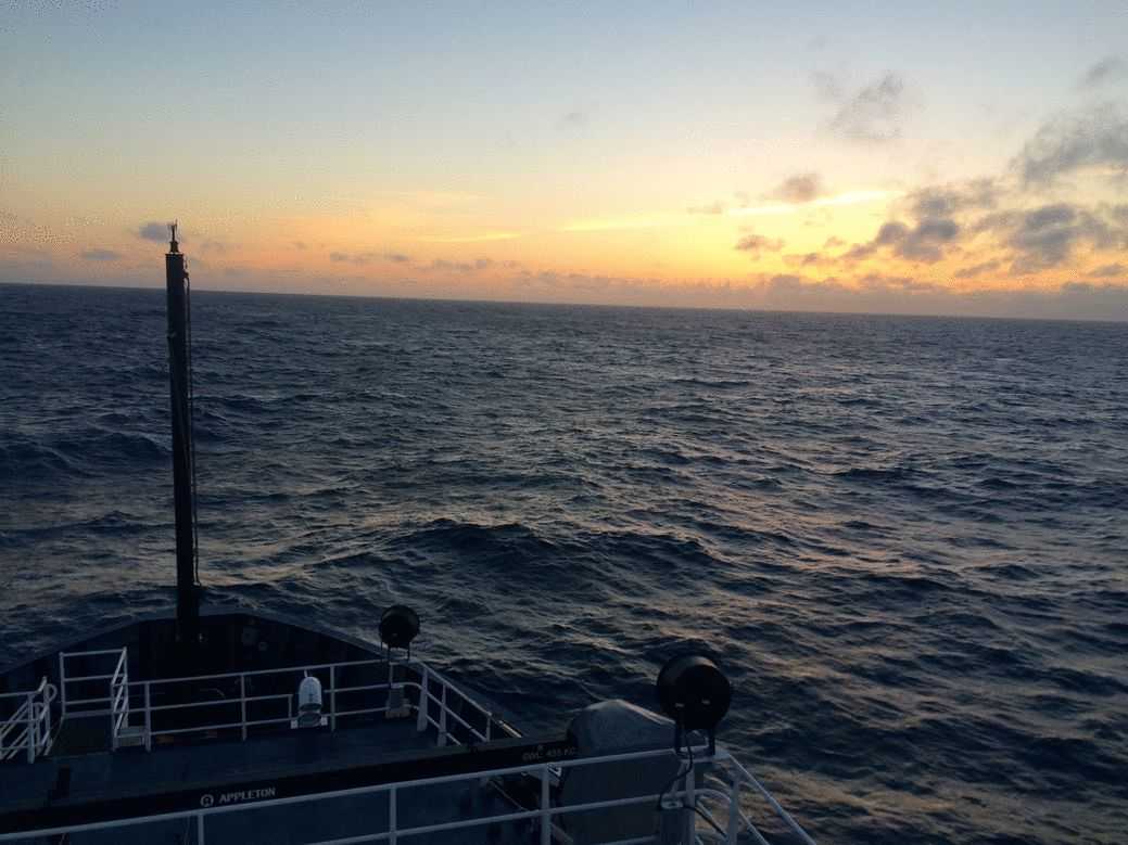 Волны разбиваются о скалы, а солнце неспеша садится за морской горизонт